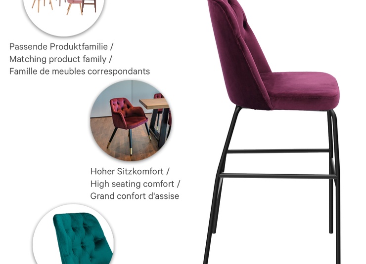 Classique et stylé à la fois : que ce soit comme chaise, fauteuil ou tabouret de bar, Marlo séduit par son confort et son design rétro. Le modèle est disponible au choix avec ou sans accoudoirs et offre de nombreuses possibilités de revêtement pour différents univers de style. Quatre variantes sont proposées pour le piètement : chêne naturel, hêtre Merano brun, noir avec embouts en laiton ainsi qu’acier thermolaqué noir. De plus, Marlo est également disponible avec un piètement pivotant avec fonction de retour – pour plus de liberté de mouvement à table et un aspect automatiquement ordonné après s’être levé. Cela permet de créer des combinaisons flexibles pour les intérieurs les plus variés dans la gastronomie et l’hôtellerie. Marlo associe charme rétro, confort moderne et polyvalence individuelle.- Types polyvalents : Marlo est disponible comme chaise, fauteuil ou tabouret de bar – adapté à chaque environnement