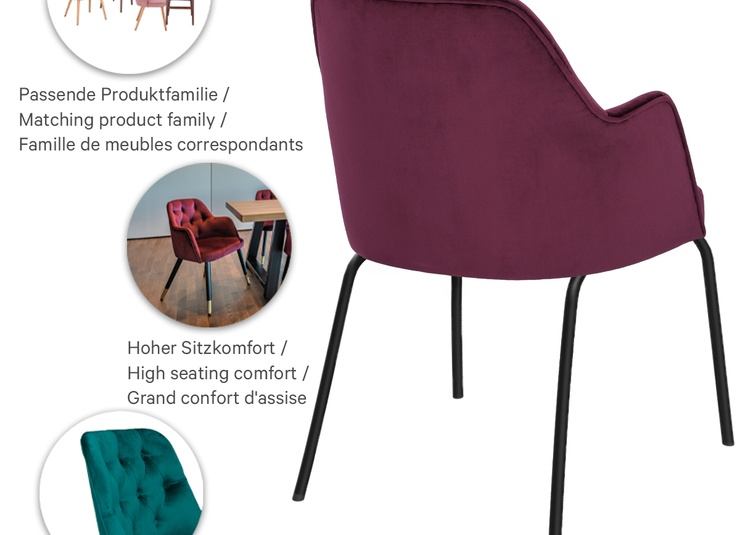 Classique et stylé à la fois : que ce soit comme chaise, fauteuil ou tabouret de bar, Marlo séduit par son confort et son design rétro. Le modèle est disponible au choix avec ou sans accoudoirs et offre de nombreuses possibilités de revêtement pour différents univers de style. Quatre variantes sont proposées pour le piètement : chêne naturel, hêtre Merano brun, noir avec embouts en laiton ainsi qu’acier thermolaqué noir. De plus, Marlo est également disponible avec un piètement pivotant avec fonction de retour – pour plus de liberté de mouvement à table et un aspect automatiquement ordonné après s’être levé. Cela permet de créer des combinaisons flexibles pour les intérieurs les plus variés dans la gastronomie et l’hôtellerie. Marlo associe charme rétro, confort moderne et polyvalence individuelle.- Types polyvalents : Marlo est disponible comme chaise, fauteuil ou tabouret de bar – adapté à chaque environnement